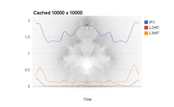 Just for fun, I graphed the IPC and hit rates over time, then overlaid it with the generated fractal and the results are beautiful: